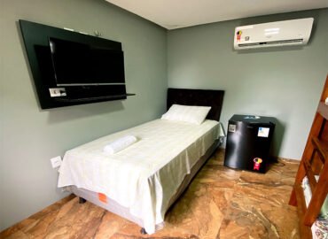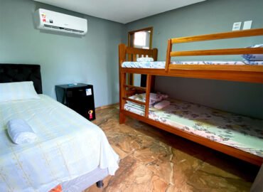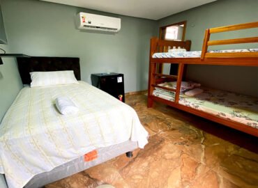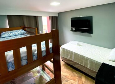 Nosso quarto triplo é a escolha perfeita para famílias ou grupos de amigos que procuram espaço e privacidade. O quarto triplo oferece uma configuração confortável e funcional, equipado com uma cama de solteiro e um beliche para acomodar até três pessoas. Complementado por amenidades modernas, como frigobar, tv smart e ar condicionado, garantindo uma estadia produtiva e relaxante.