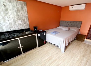 Ideal para viajantes individuais ou casais, nosso Quarto Duplo oferece um refúgio acolhedor e confortável após um dia explorando Praia do Tapari. Equipado com uma cama de casal confortável e cozinha, ar-condicionado, TV de tela plana com canais a cabo e Wi-Fi gratuito, este quarto combina praticidade e conforto. As janelas amplas proporcionam uma iluminação natural encantadora, complementada por uma decoração inspirada nos elementos naturais da região.
