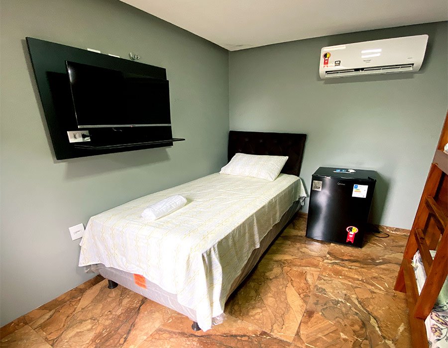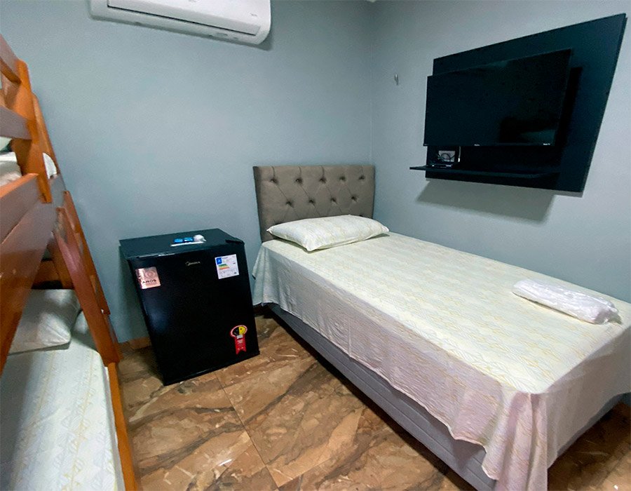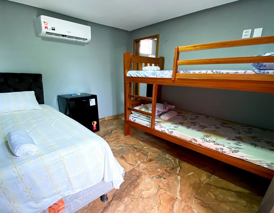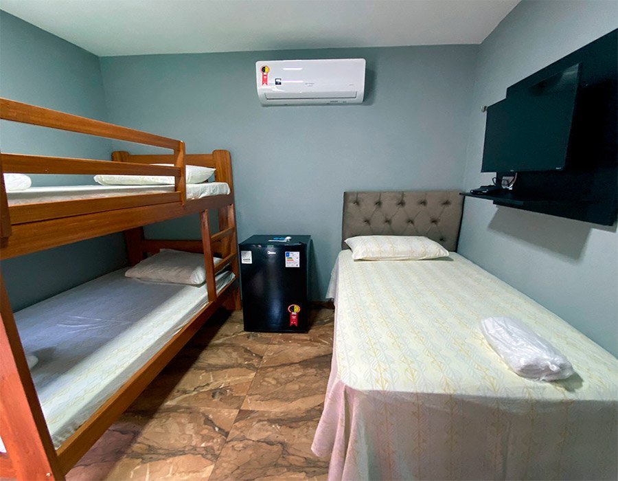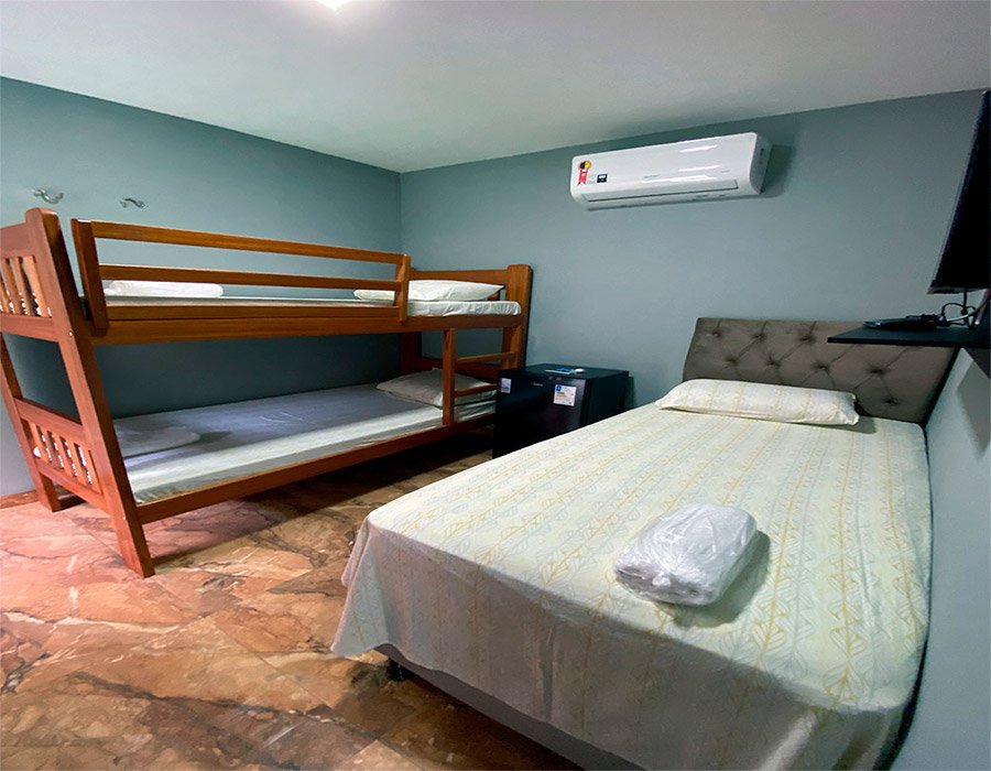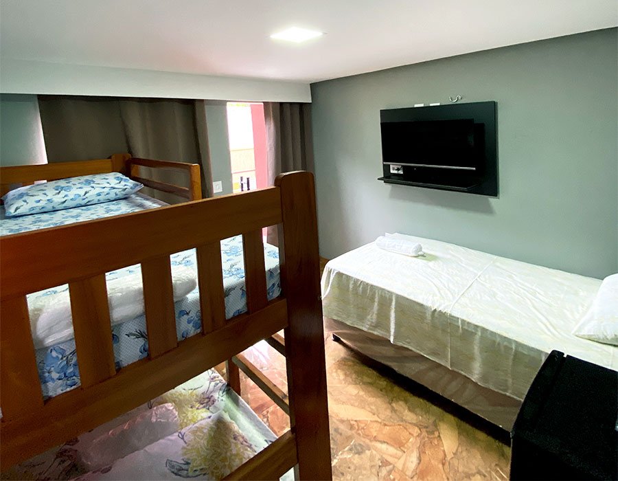 Nosso quarto triplo é a escolha perfeita para famílias ou grupos de amigos que procuram espaço e privacidade.